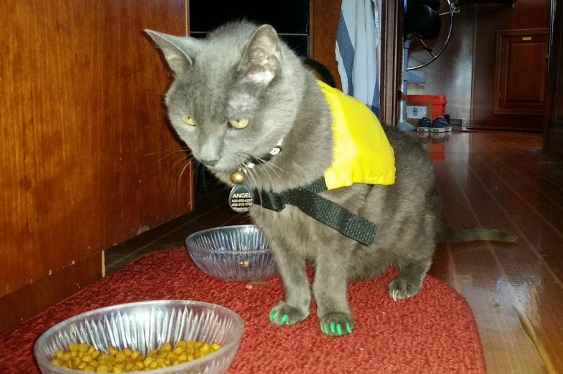 Angel turned 19 just a little over five weeks ago. That's a good run for a small cat, and especially so considering she only ever had one good kidney. We adopted her when we still lived a land-bound life in the San Francisco Bay area, along with her adopted "sister," born a day apart, when they were just weeks old.